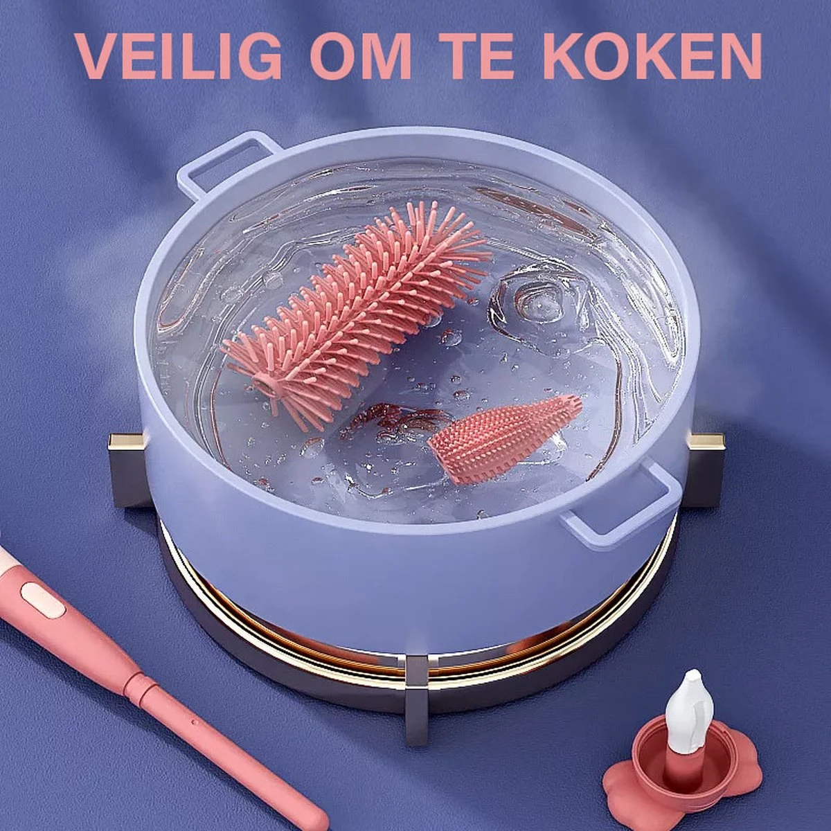 Baby Flessenborstel – Flessenreiniger – Flessenborstel Siliconen – Flesvoedingsaccessoires – BPA Vrij – Groen – 3 In 1