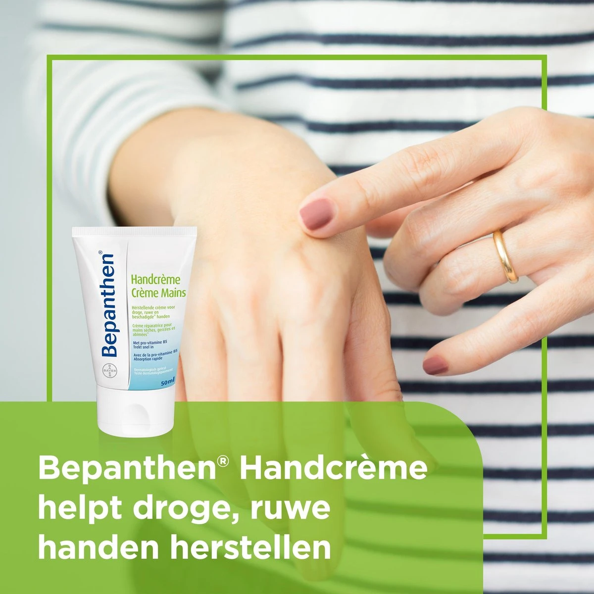 Onze handen hebben het vaak zwaar te verduren, bijvoorbeeld door wisselingen in temperatuur, het vaak wassen van onze handen en irriterende stoffen (bijvoorbeeld schoonmaakmiddelen). Of wanneer jij werk verricht waarbij je handen veel worden gebruikt, bijvoorbeeld als kapster of schilder (working hands). Heb jij droge handen en ben je op zoek naar een handcreme, handzalf of nagelcreme? Nieuwe Bepanthen Handcreme met pro-vitamine B5 (dexpanthenol) hydrateert, beschermt en verzacht de (zeer) droge handen en nagelriemen. Daarnaast helpt de Bepanthen creme het huidherstel van de droge, ruwe en beschadigde* handen. De hand creme zorgt voor zachte en soepele handen. De creme is niet vet en trekt snel in, waardoor je jouw handen direct weer kan gebruiken.