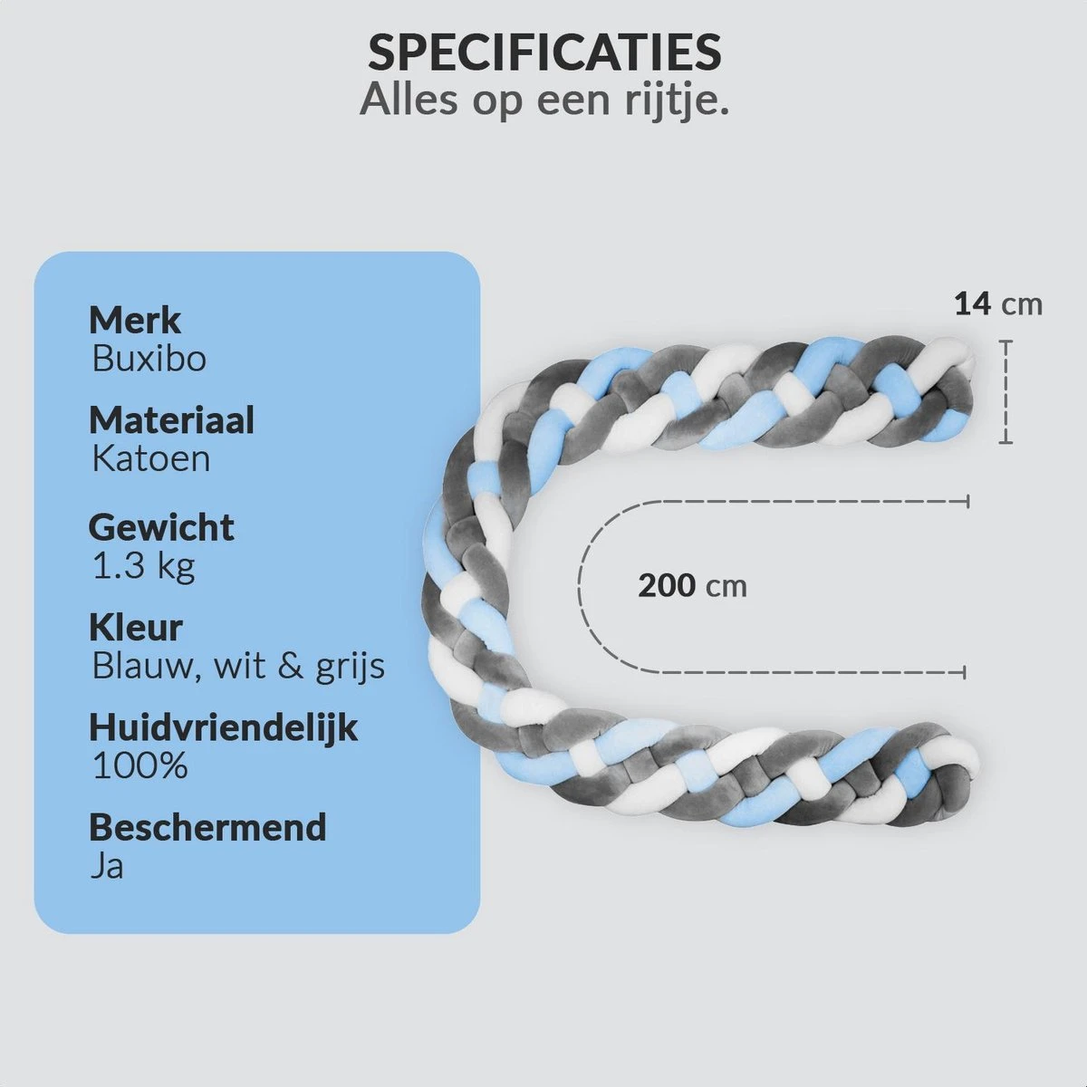 Buxibo Baby Bed Bumper – Baby Veiligheid/Hoofdbescherming/Bedbescherming – Multifunctionele Voedingskussen/Bedomrande/Boxomrander – 200CM – Blauw