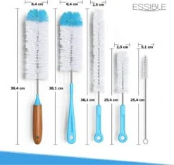 Flessen Borstel Set – Zwart – 5 Borstels – Klein – Groot – Flessen – Thermoskan – Flessen Reiniger