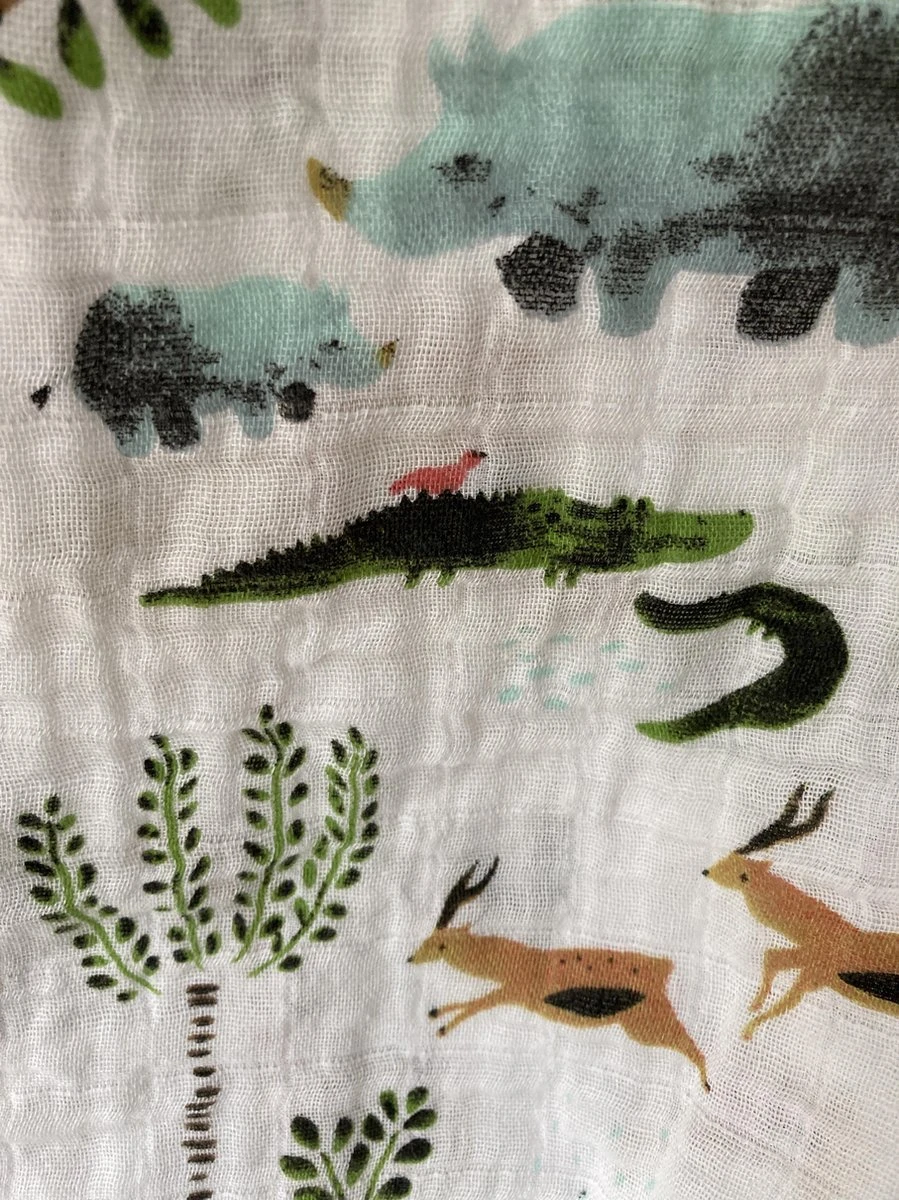 Hydrofiel XL Jungle is een uiterst fijne mousseline voorgewassen doek gemaakt van katoen, geweven met de holle vlechtwerk methode.