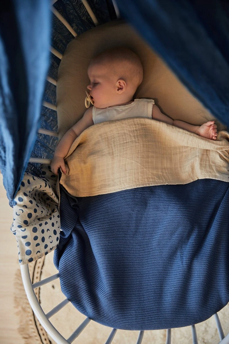 Handig om minimaal twee dekens voor het ledikant te hebben. Zo sta je niet ’s nachts zonder dekens als je het bed plotseling moet verschonen na teruggegeven voeding of een poepluier die buiten de lijntjes is gegaan.