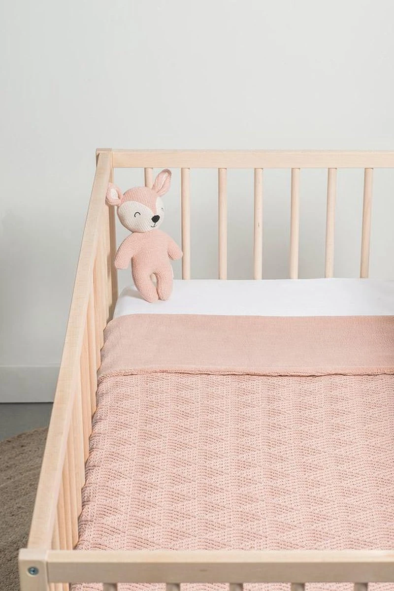 Deze luxe gebreide wiegdeken staat prachtig in de wieg en kinderwagen. Hiermee weet jij zeker dat jouw kleintje heerlijk warm kan slapen. Het is gebreid in een golfjespatroon en deze gebreide riviergolfjes vind je terug in meerdere leuke babyproducten uit de river knit collectie. Ook handig als wikkeldeken. Met de fleecelaag is het een extra zachte warme en luxe uitvoering.