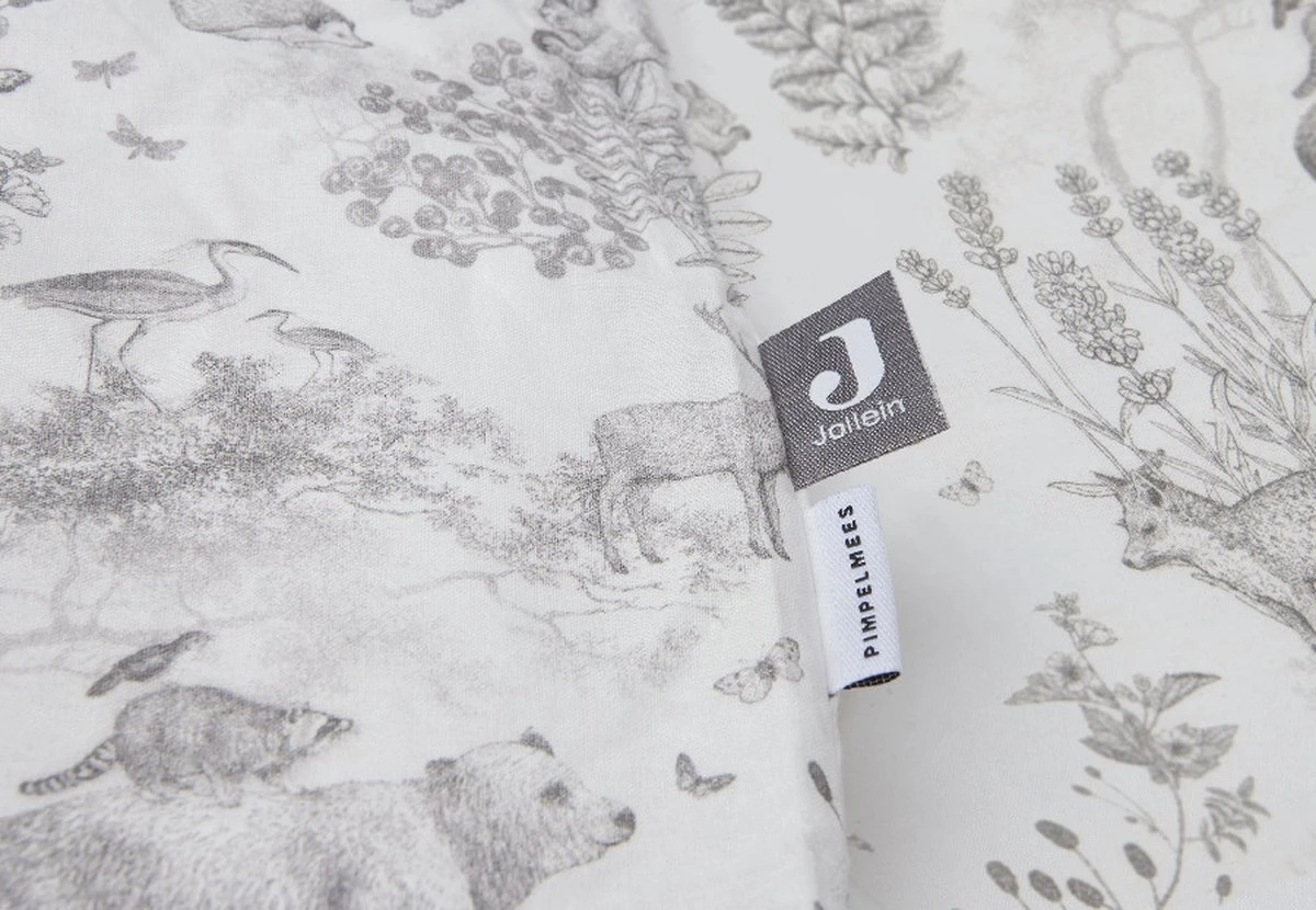 Het Pimpelmees x Jollein bosdieren lakentje is verkrijgbaar voor de wieg en voor het ledikant.