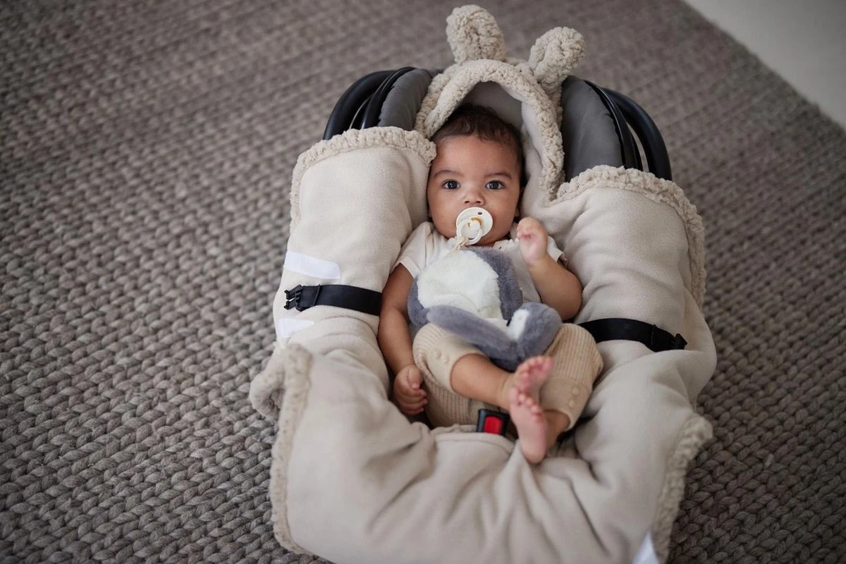 Deze omslagdoek is te gebruiken vanaf de geboorte. En ook heel handig te gebruiken in babyās eerste autostoel. De gordels van de autostoel kun je door de openingen in de deken halen waardoor je baby lekker in de omslagdoek kan blijven zitten. Het is een universele wikkeldeken voor de Maxi Cosi en elk ander merk categorie 0 autostoeltje met drie of vijfpuntsgordel.