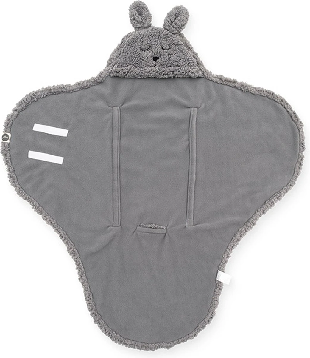 Wikkel je baby in deze omslagdoek en sluit de deken met de praktische klittenbandstroken. Zet het mutsje erbij op en zie daar, die schattige oortjes en dito konijnengezichtje op het mutsje. Echt te lief!