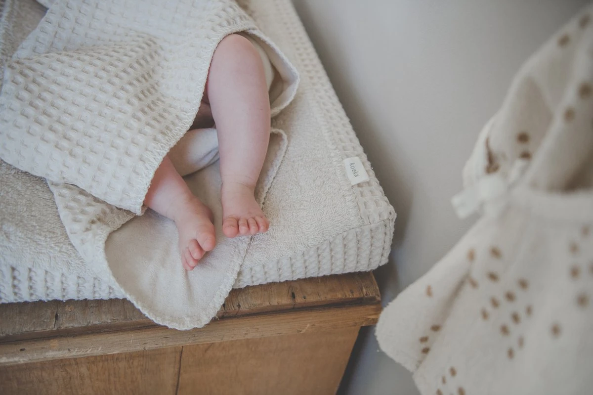 De Koeka omslagdoek met capuchon is met stretch badstof gevoerd en gebruik je om je baby in te wikkelen. Deze wikkeldoek is voorzien van een opening voor de gordels van de auto- of wipstoel. Zo blijft je kleintje altijd comfortabel warm, zowel in huis als onderweg. De omslagdoek is ook fijn om te gebruiken tijdens het voeden of om je kindje in te wikkelen in de box of kinderwagen. Door de handige lus hangt de doek altijd binnen handbereik in de bad- of babykamer.
