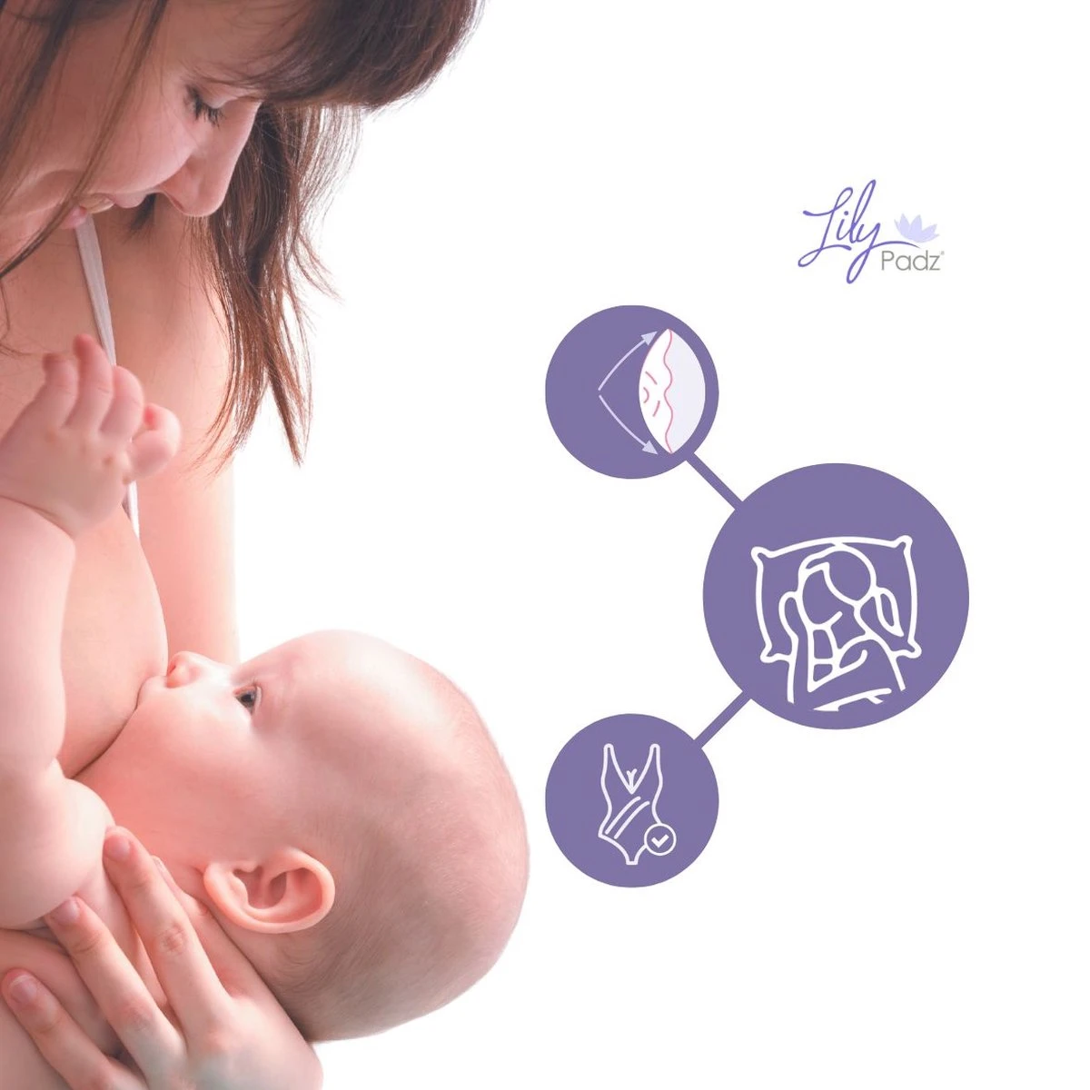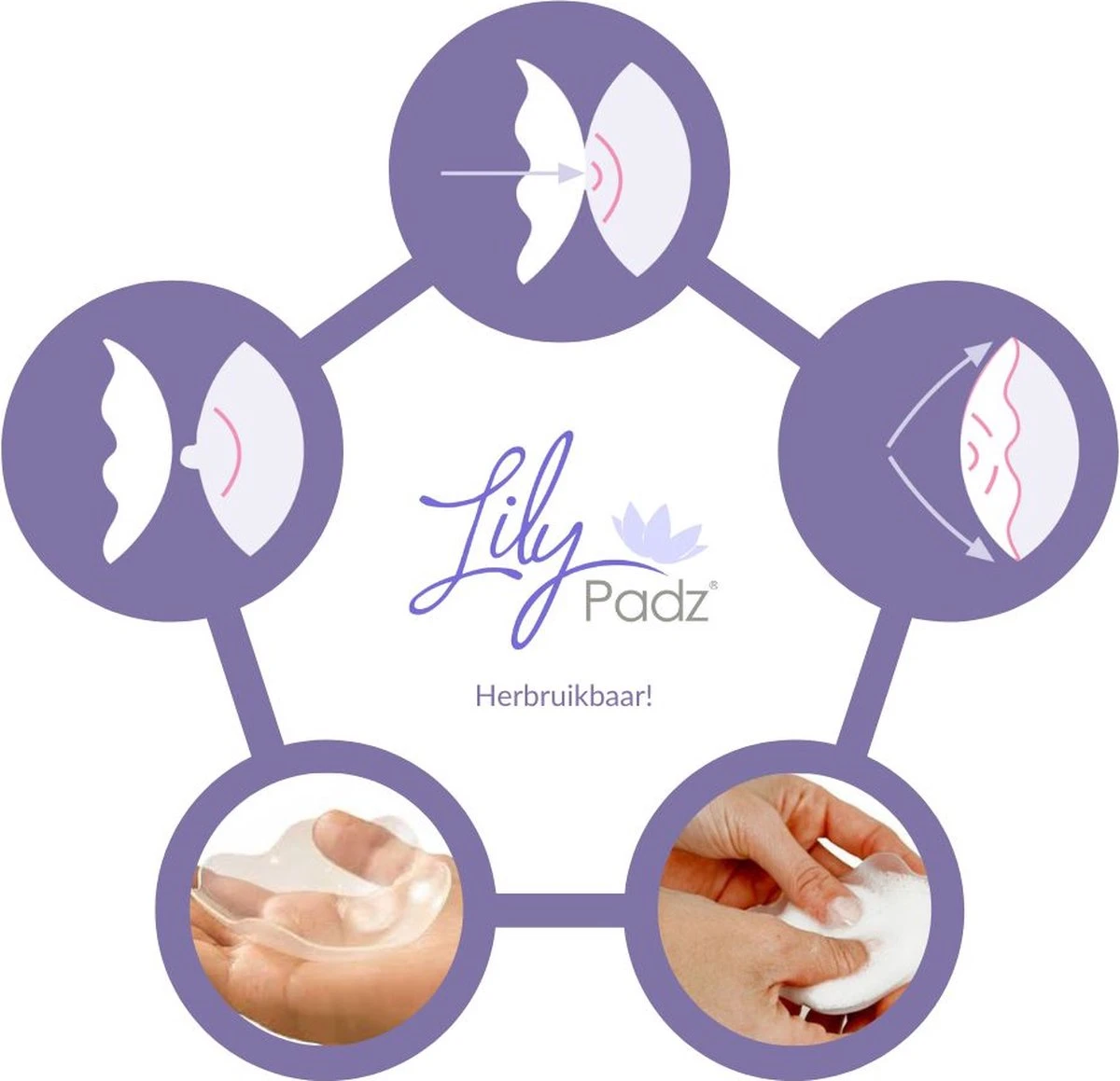 LilyPadz Zoogcompressen werken volgens het eeuwenoude principe dat druk op de tepel (zoals van een vinger) tijdelijk het lekken van melk tegengaat. LilyPadz geeft deze druk, zelfs zonder het gebruik van een bh.