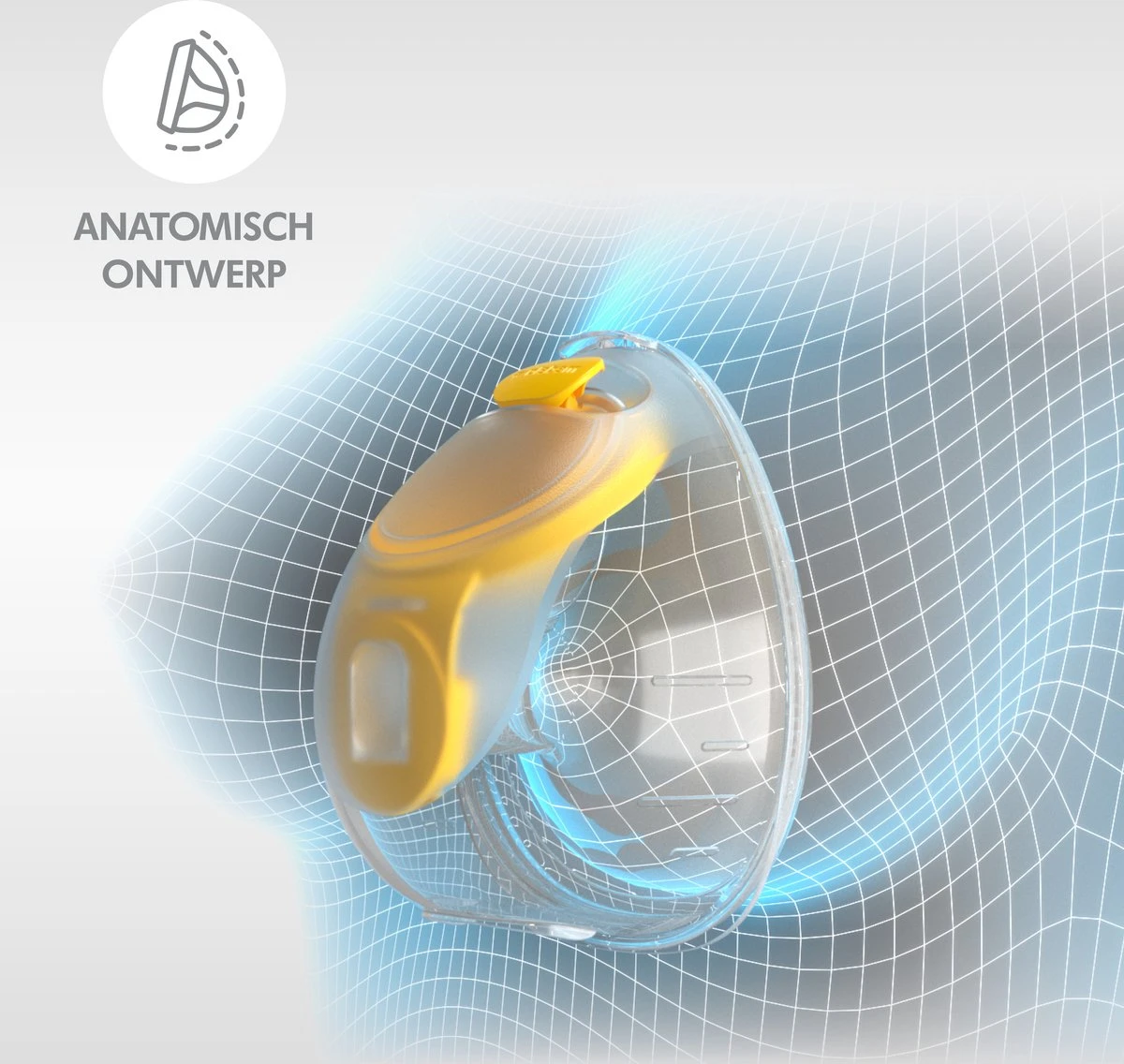 • Anatomisch ontwerp: de handsfree opvangcups zijn speciaal ontworpen om de melkstroom te maximaliseren. De bredere onderste helft ondersteunt de onderkant van de borst, terwijl het gladde oppervlak en de rand die wijd uitloopt van de borst druk op de melkkanalen helpt voorkomen.