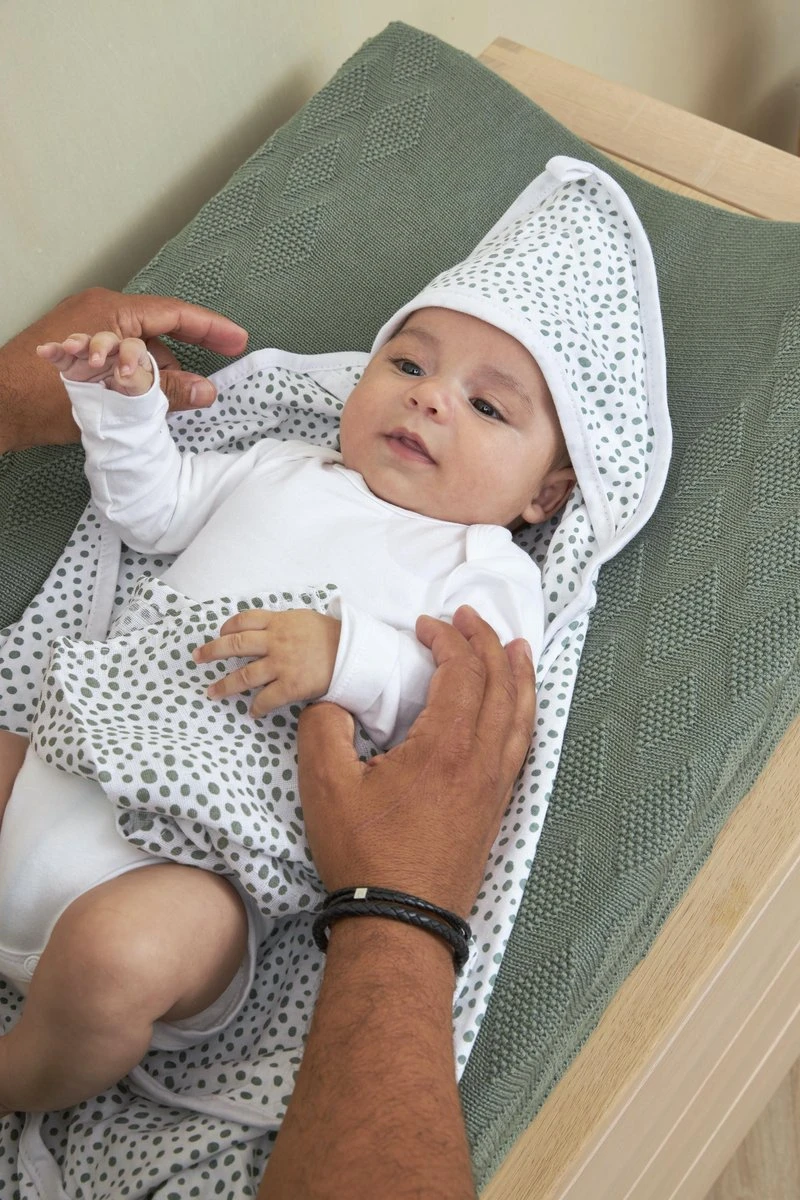 Pak je kindje lekker in na het badje, douche of zwemmen met de Meyco Baby Badcape Basic Jersey Cheetah. Je slaat de cape aan twee kanten om het lijfje en de capuchon over het hoofdje, waardoor je kindje zich heerlijk warm en geborgen voelt.