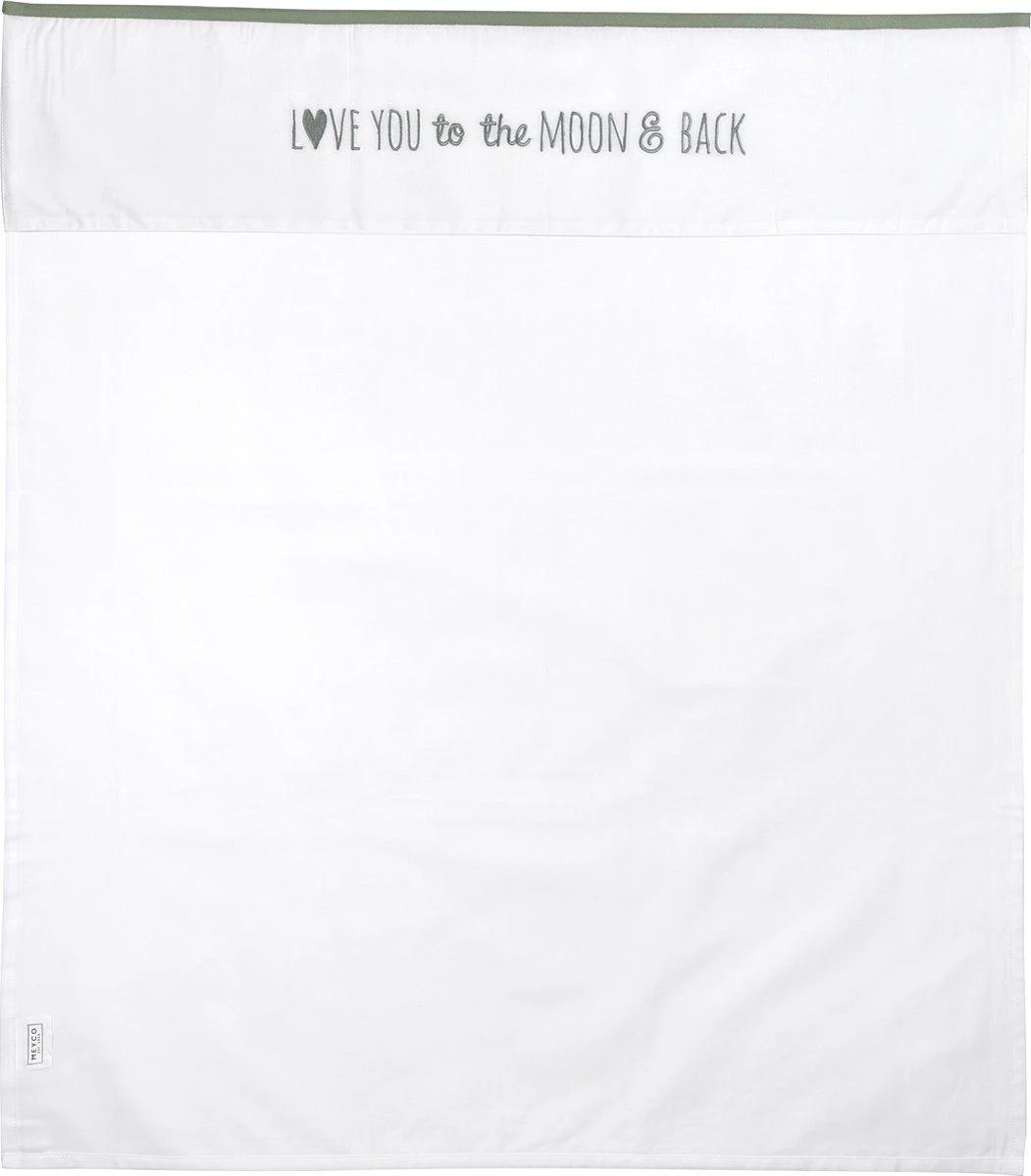 Een ding is zeker: met dit Meyco Baby Laken Love you to the moon geniet je kindje van een comfortabele nachtrust. Het lakentje voelt dankzij de 100% katoenen kwaliteit namelijk heerlijk zacht. Het natuurlijke materiaal ademt goed en neemt vocht uitstekend op. Je kindje ervaart hierdoor een droog en fris slaapklimaat. Het witte lakentje heeft een gekleurde bies op de omslagstrook met de tekst ‘Love you to the moon & back’. En daar is natuurlijk niets aan gelogen.