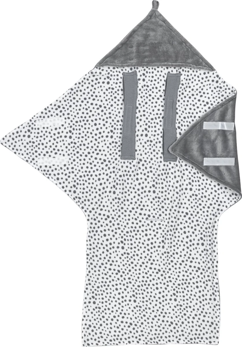 De Meyco fleece wikkeldeken Cheetah is gemaakt van een heerlijke zachte fleece stof. De buitenzijde heeft een mooie uni kleur en de binnenzijde hippe Cheetah stippen. De wikkeldeken met capuchon is ideaal in de autostoel omdat het in de auto eenvoudig open te slaan is en weer lekker warm is als je het buiten weer dicht doet. Daarnaast is de wikkeldeken ook erg fijn te gebruiken in de wandelwagen. De wikkeldeken is extra lang, waardoor hij makkelijk is terug te vouwen om je kindje warm te houden. De wikkeldeken is uitgevoerd met een gat, zodat deze ook te gebruiken is in wipstoelen of 3- of 5-punts autostoelen.