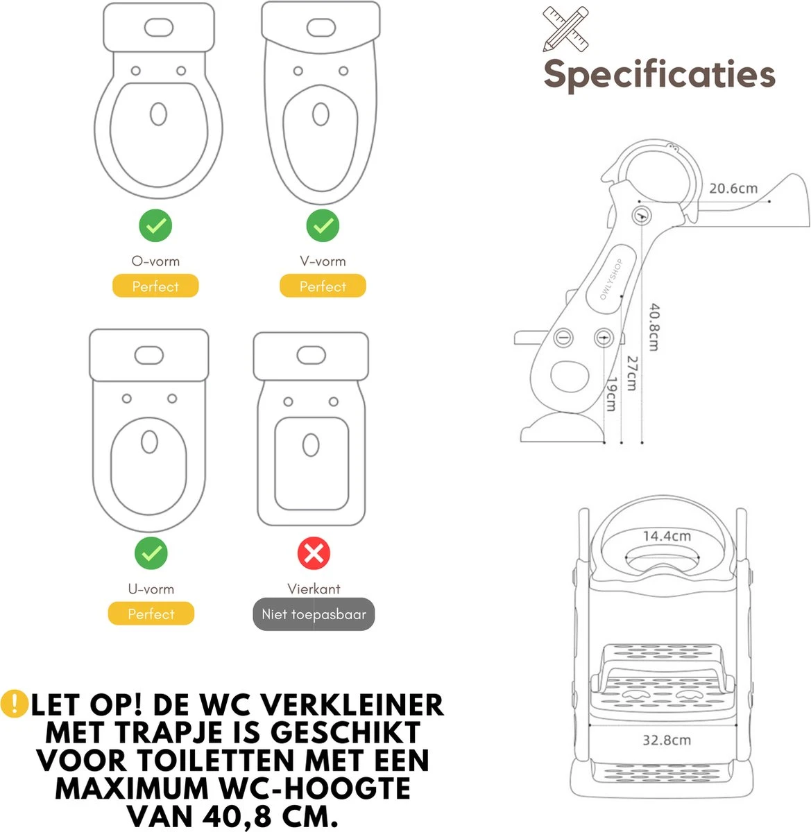 LETOP! De WC Verkleiner met Trapje is geschikt voor toiletten met een MAXIMUM WC-HOOGTE van 40,8 CM.
