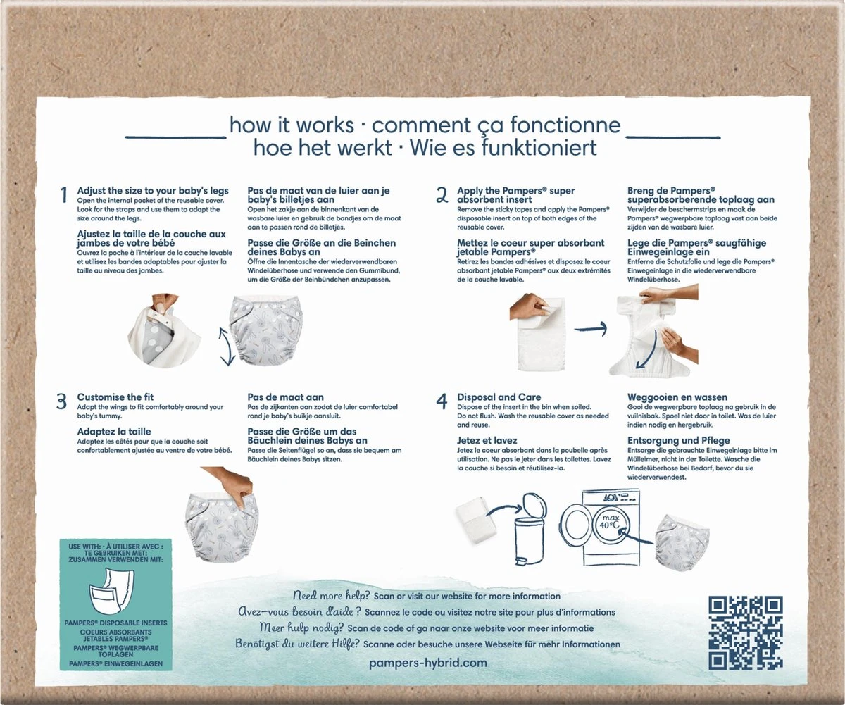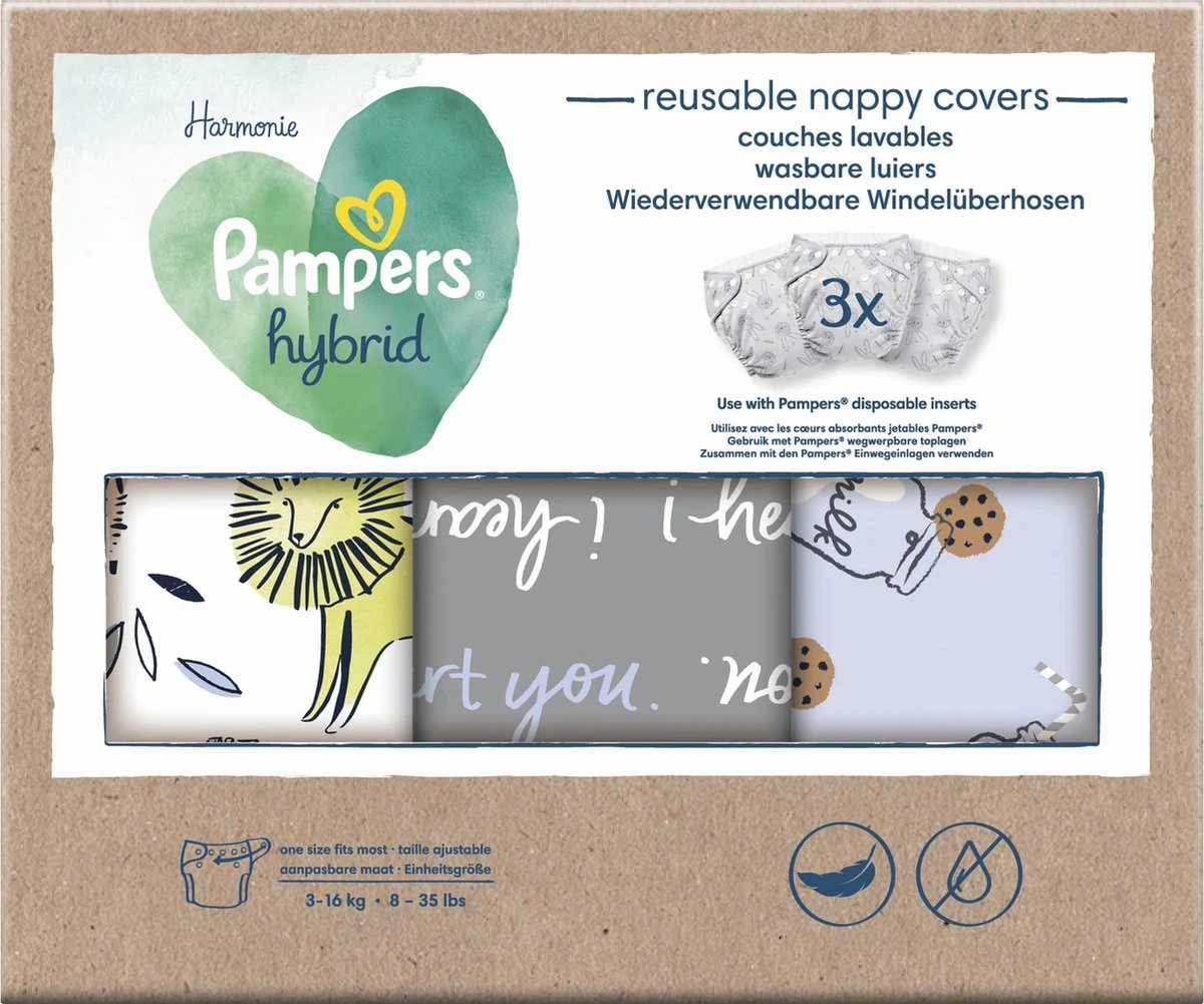 Breid je collectie schattige tekeningen uit. Pampers Harmonie Hybrid luiers zijn wasbaar en gemaakt van waterdicht materiaal. Ze groeien met je baby mee en zijn ontworpen om te worden gebruikt met Pampers absorberende wegwerpbare toplagen voor bescherming rondom tegen lekken.