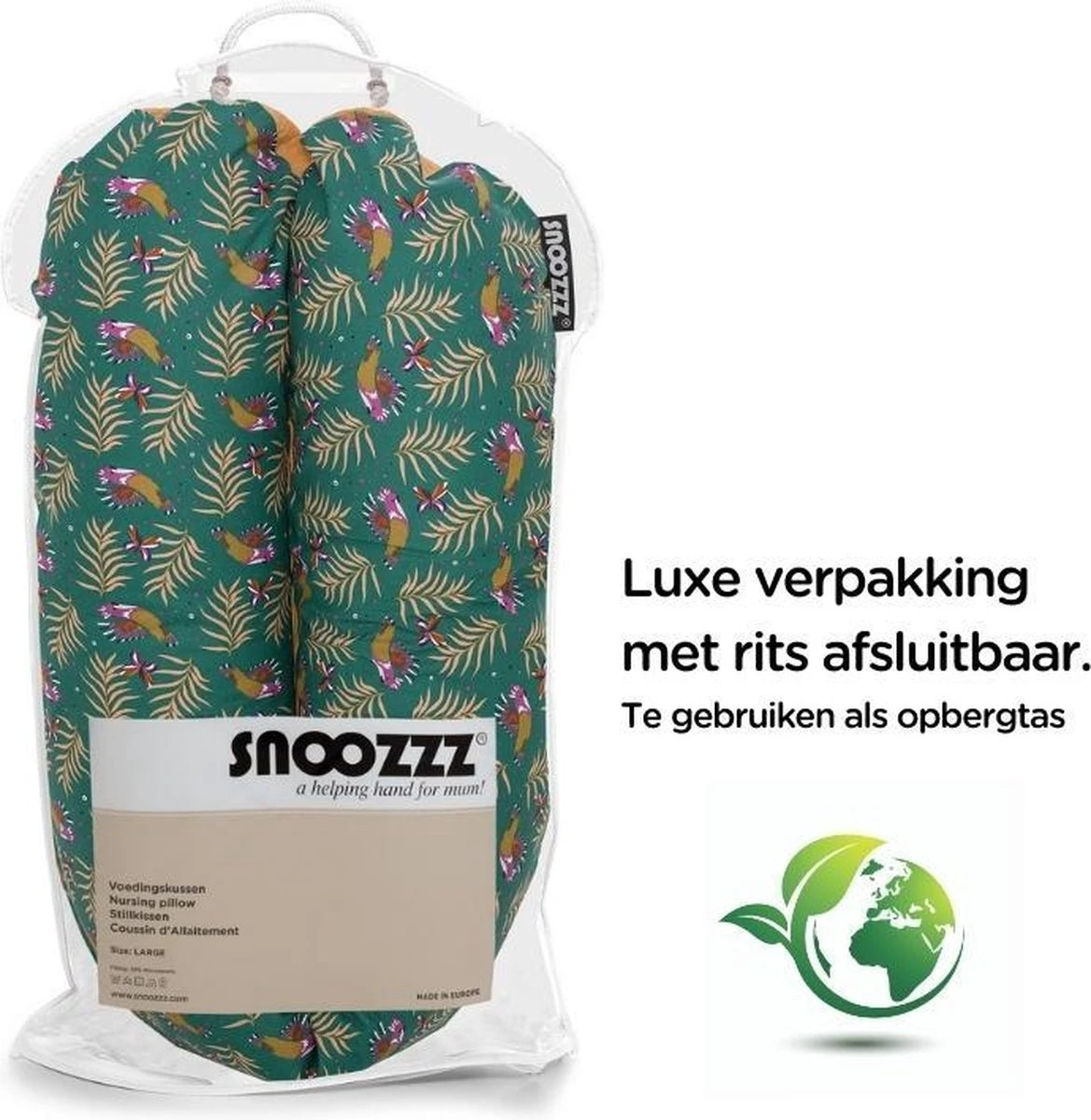De Snoozzz Voedingskussenhoes Canatoe is gemaakt van katoen. Dankzij de rits is de voedingskussenhoes gemakkelijk afneembaar. Deze rits is mooi weggewerkt waardoor jij en je baby je niet kunnen bezeren of irriteren aan de rits. De voedingskussenhoes van Snoozzz kan je wassen in de wasmachine op 40 graden. Wil je een extra hoes of een keer een andere print of stof? Dat kan, de Snoozzz voedingskussen hoezen zijn ook los verkrijgbaar in verschillende designs en stoffen. Alle Snoozzz voedingskussen hoezen hebben dezelfde afmeting 185 x 35 cm.