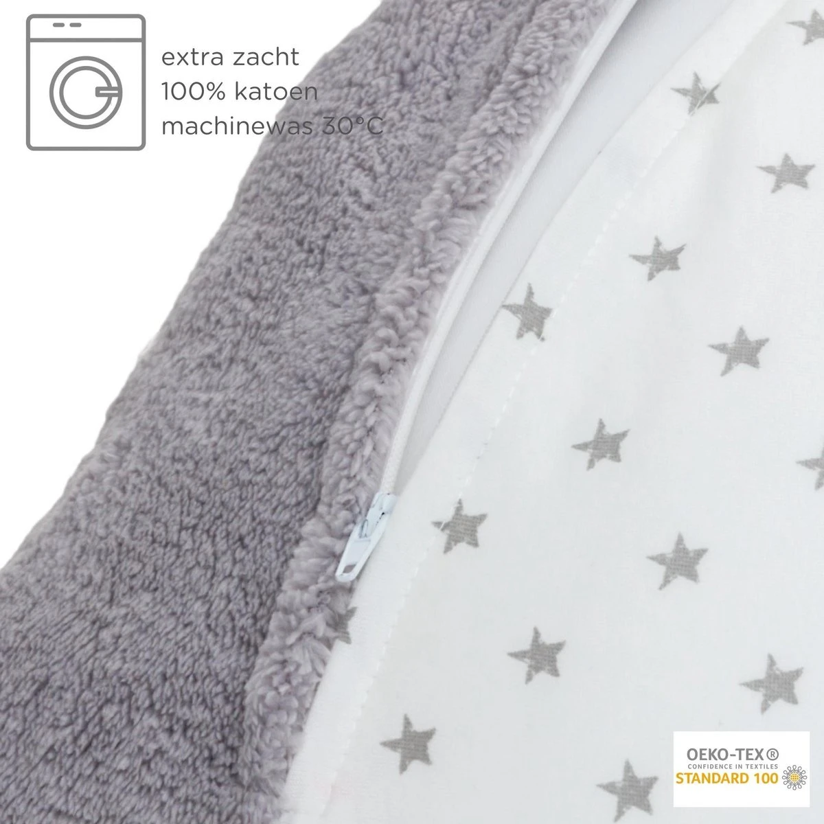 De Snoozzz Voedingskussenhoes zachte teddy mini ster is gemaakt van extra zachte microvezel met katoen. Dankzij de rits is de voedingskussenhoes gemakkelijk afneembaar. Deze rits is mooi weggewerkt waardoor jij en je baby je niet kunnen bezeren of irriteren aan de rits. De voedingskussenhoes van Snoozzz kan je wassen in de wasmachine op 40 graden. Wil je een extra hoes of een keer een andere print of stof? Dat kan, de Snoozzz voedingskussen hoezen zijn ook los verkrijgbaar in verschillende designs en stoffen. Alle Snoozzz voedingskussen hoezen hebben dezelfde afmeting 185 x 35 cm.