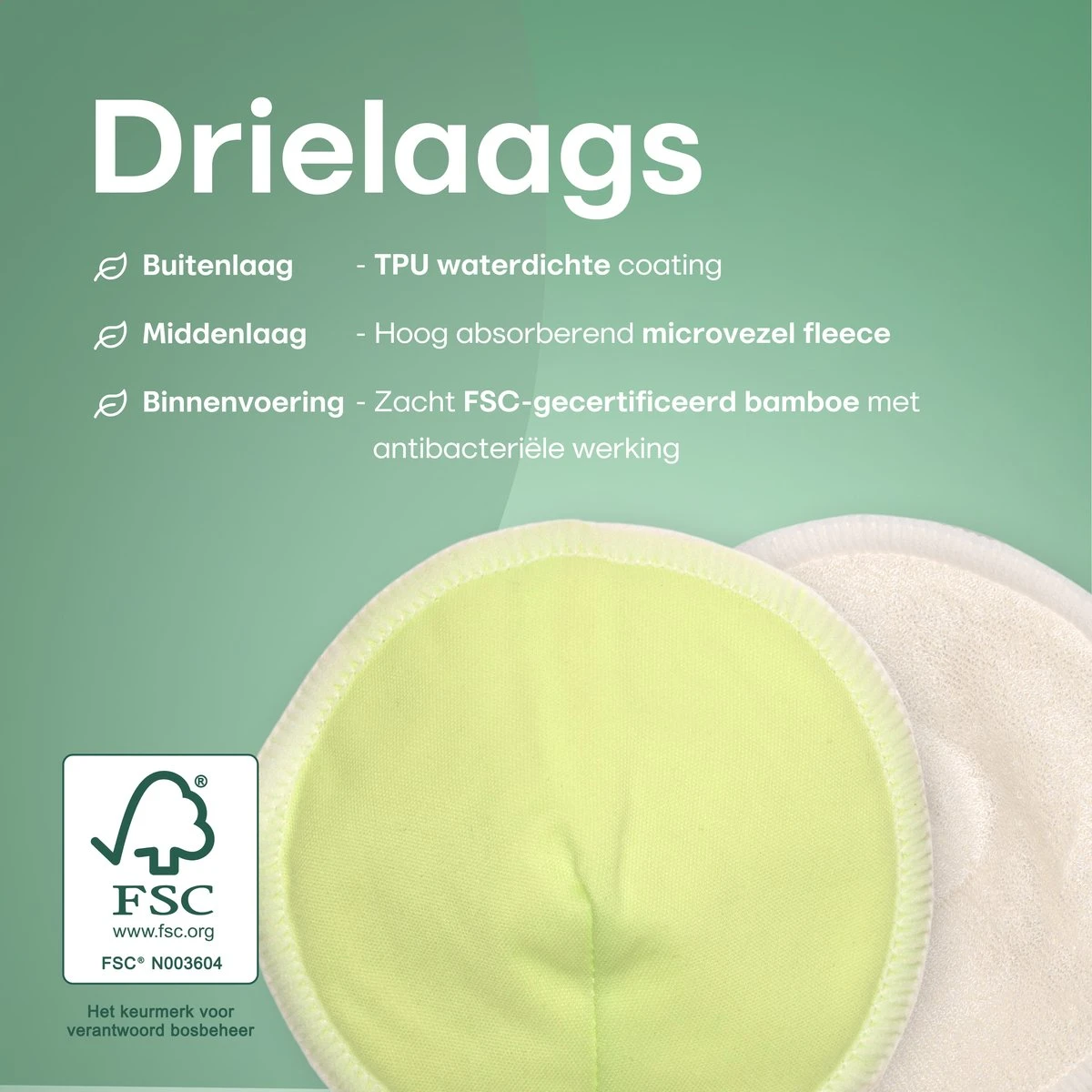 De 3-laagse bamboe samenstelling voelt extra zacht aan op de meest gevoelige huid. Dat terwijl hij maximale absorptie biedt. Daarnaast zijn de compressen natuurlijk volledig herbruikbaar, waardoor je geen afval creëert. Daarbij komt dat de bamboe FSC®-gecertificeerd is. Als je voor dit product kiest, zorg je niet alleen goed voor jezelf, maar bescherm je óók onze bossen wereldwijd!